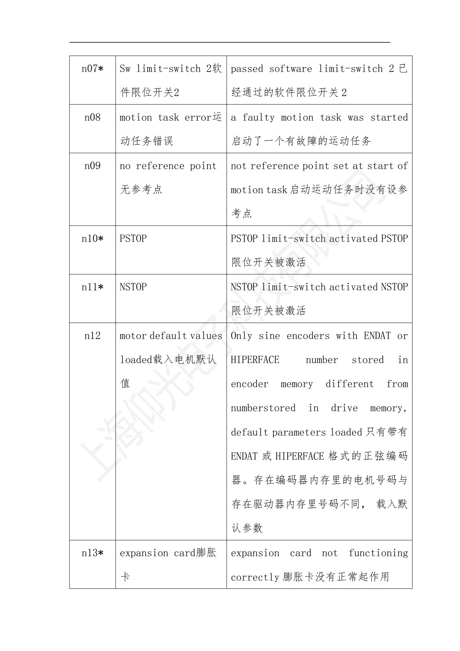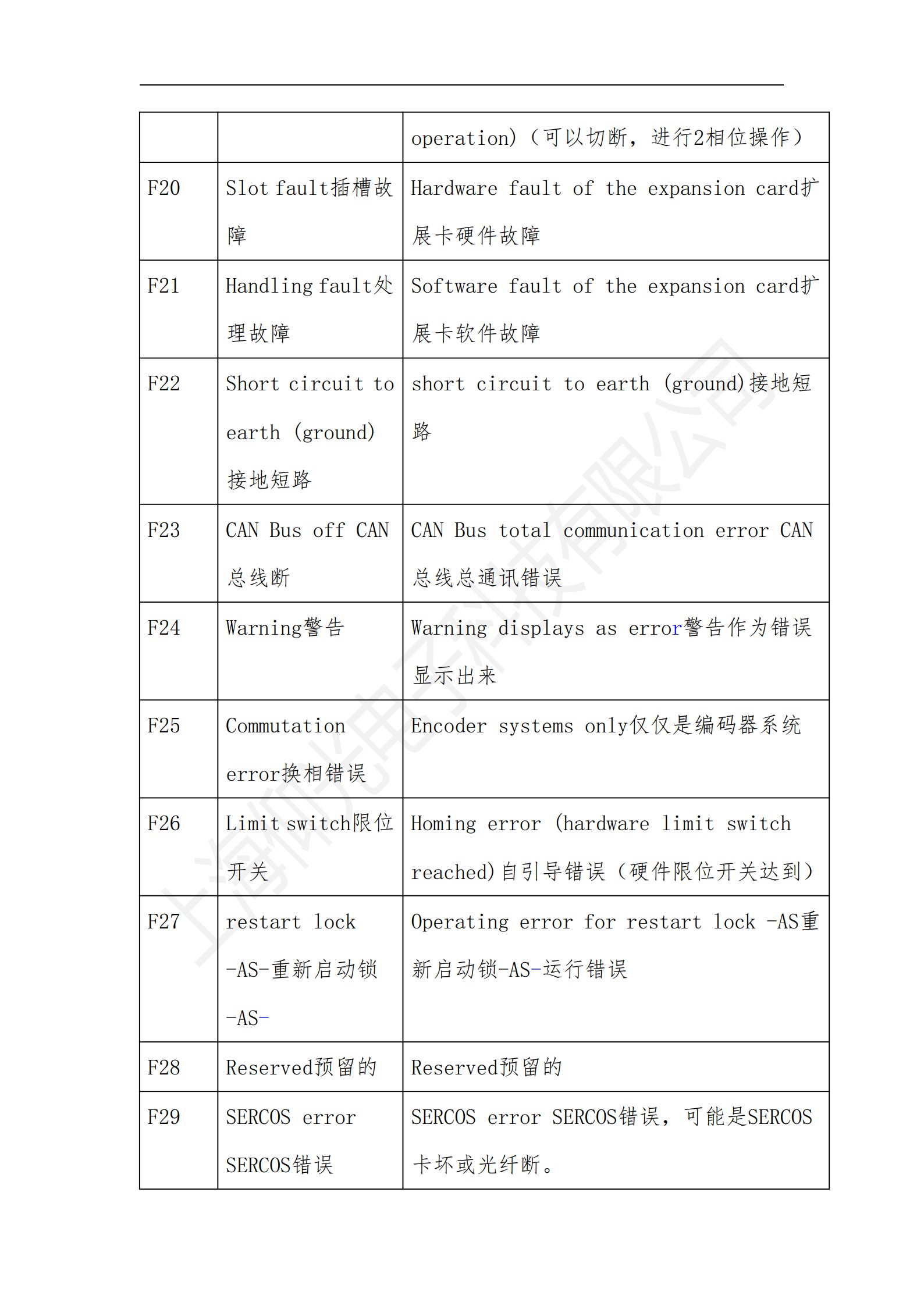 科爾摩根S700系列驅(qū)動器操作使用說明書,科爾摩根S700系列驅(qū)動器報(bào)警故障代碼解釋: