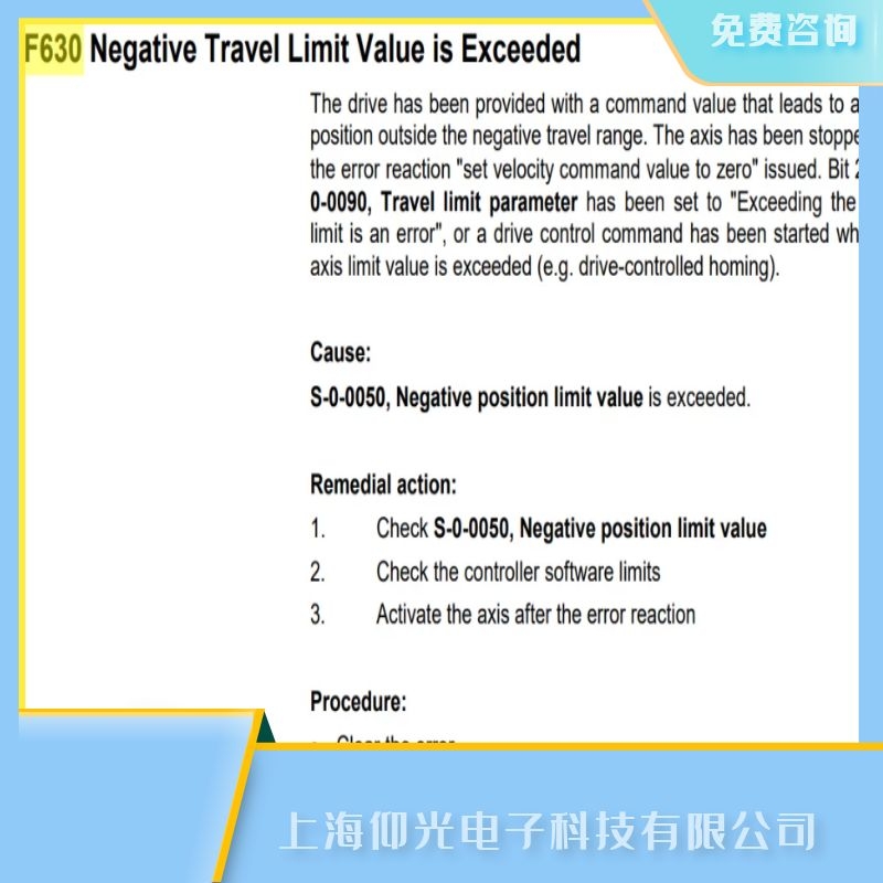伺服控制器報F630超過負行程故障維修含義: