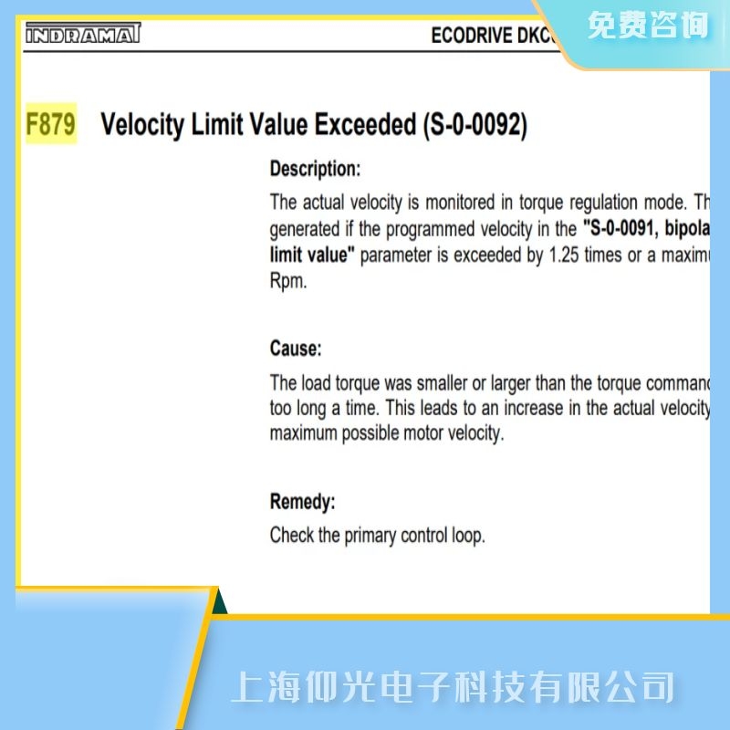 博世Rexroth力士樂控制器報F879維修含義: